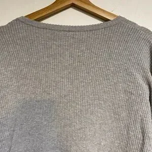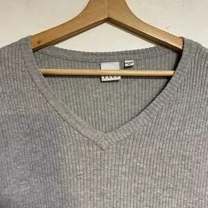 ELLE Ribbed V-Neck Sweater – Grey – XL
