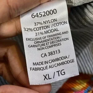 Material: 37% Nylon, 32% Cotton, 31% Modal