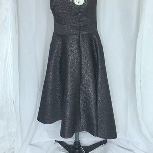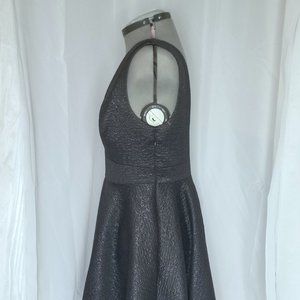 ELLE by RW&Co, 10, black cocktail dress, shimmery (to a point it feels charcoal rather than black), high/low (starts at knee), V-neck/back, A-line. Fits beautifully! Contemporary and graceful.