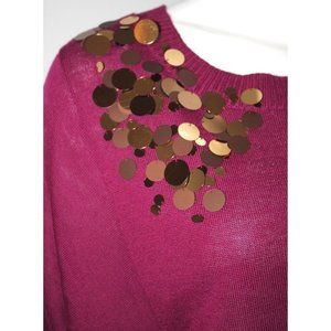 ELLEN TRACY Magenta SEQUIN Gold SWEATER Long Sleeve TOP ( XS )