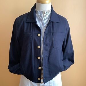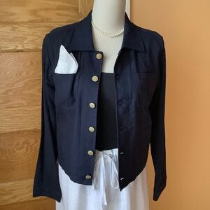 ELLEN TRACY Navy Crop Linen Blend Jacket Size M