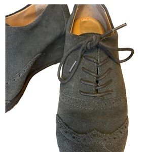 Like new condition charcoal grey ladies suede lace-up oxfords by Ellen Tracy Active. Comfortable wedge heels. Wing-tip seaming details.
