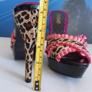 Ellie Penthouse Ginger Satin Leopard Heels with a Ruffled Trim