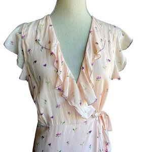 ELLOR Pink Floral Harper Ruffle Wrap Dress X-Small NWT