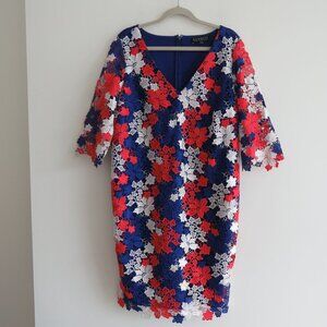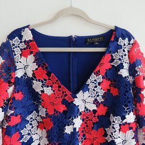ELOQUII STUDIO Red White Blue Lace Overlay Sheath Dress Evening - Size US 14