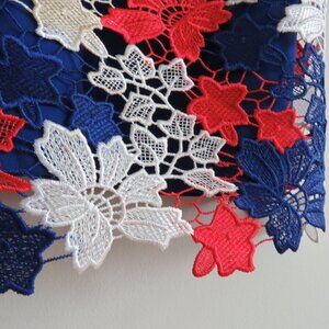 Lovely bright red white blue floral lace overlay
