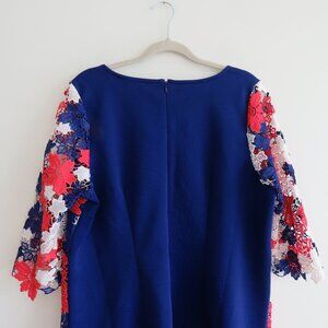 ELOQUII STUDIO Red White Blue Lace Overlay Sheath Dress - Size US 14