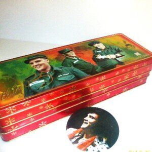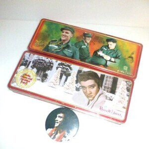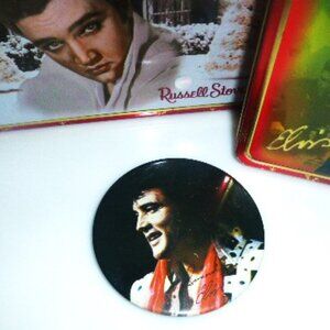 ELVIS ITEMS Military Can Elvis Christmas Tin Elvis Button Elvis HOLLYWOOD Lp