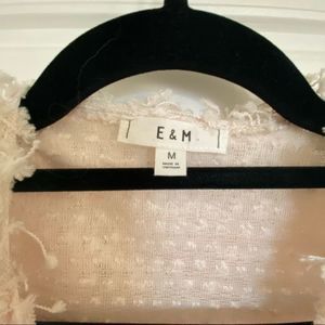 E&M long sleeve bobble tassels open front cream cardigan size Medium EUC