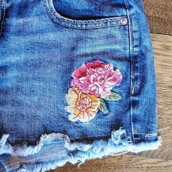 EMBROIDERED Flowers Boho Boyfriend Denim Shorts Size 2