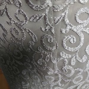 Stunning embroidered lace dress with matching bolero jacket by JS Collections New Sz 16. Embroidery has silver threads in it so it sparkles in the light. It is lined. It has a back zipper. Wear it either with or without the jacket. Light and airy, great for a special occasion on a bright summer day.