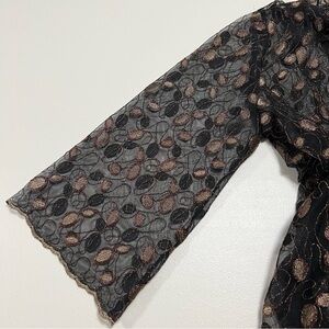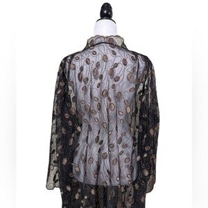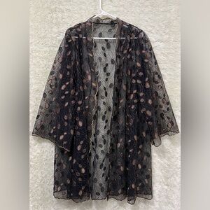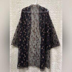 Excellent condition. Scalloped hem with embroidered details. Mesh body. Can be worn as dress cardigan / beach cover up. No size / material tag / brand tag.
