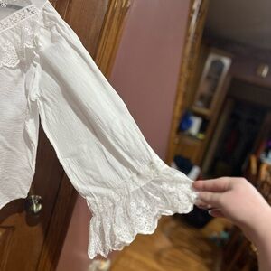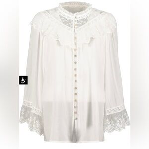 Your new timeless blouse with gorgeous lace detailing and dramatic sleeves. This statement piece is perfect for dressing up.