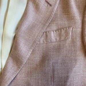 Armani spring blazer, light pink men’s sport coat, lavender viscose suit jacket, designer Italian tailoring, breathable menswear, pastel wedding blazer, summer formalwear, Emporio Armani G Line, soft neutral menswear