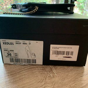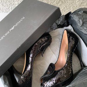 EMPORIO ARMANI Pumps - US 6 (EU Size 36) Black Peep-Toes Sculptural Heels