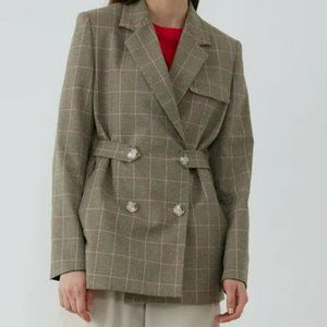 EN OR Waist Line Control Over Jacket - plaid blazer great to style up or down. Cream/tan, brown, and light pink.