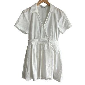 EN SAISON Noemi Poplin White Tennis Romper US S is an absolute gem that is sure to make a statement wherever you go. The romper features a pleated tennis skirt on a crisp collard bodice. Inside zipper and wrap bodice.
