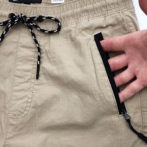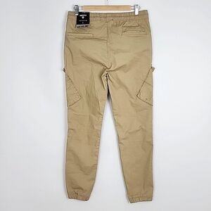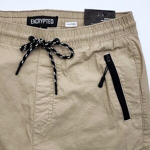 New with tags, ENCRYPTED men's relaxed tapered fit jogger in a sandy tone in a stretch, breathable material and with a total of 6 pockets, size Large.
