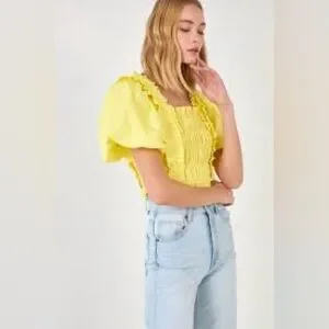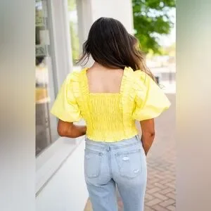 ENDLESS ROSE Smocked Puff Sleeve Top In Yellow
