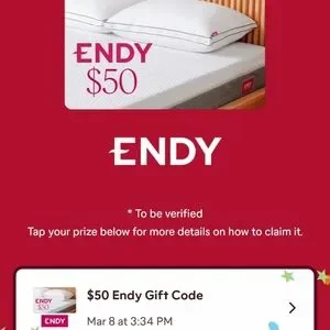 $50 Endy gift code. It's a digital code for Endy products. This code can be used towards a purchase on their website until June 2026.