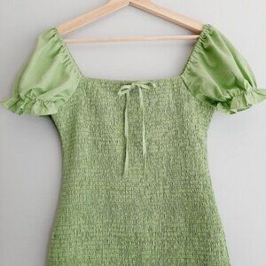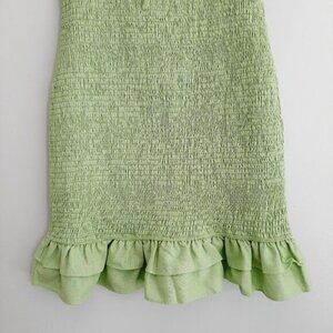 ENGLISH FACTORY / Smocked Ruffle Hem Puff Sleeve Mini Dress Green Sz M