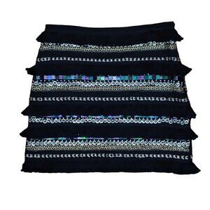ENGLISH ROSE Black sequins beaded fringe pearls mini skirt