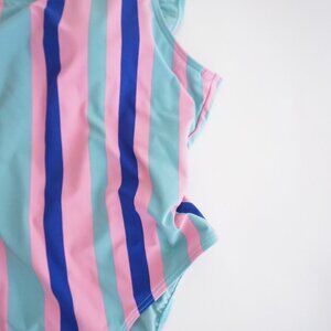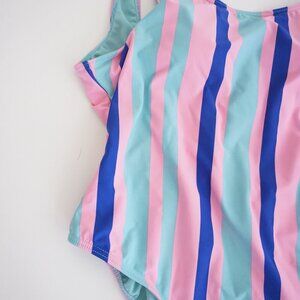 ENVYA Swimwear Pink Teal Stripe One Piece High-Leg Low Scoop Back Swimsuit M
