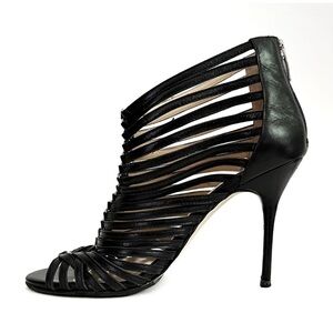 ENZO Angiolini Ginolfi Leather Peep Toe Gladiator Stiletto Heel Booties Black