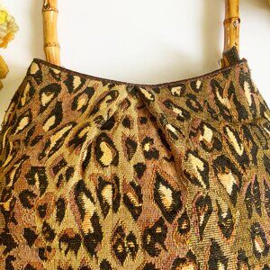 ENZO CORDILLO Brown and Black Animal Prints Tapestry Bag with Bamboo Top Handle