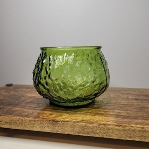 E O Brody Co. G101 Vintage Green Dépression Era Glass Bowl - Cleveland, OH USA. Brightness. Iridescence. Old world Charm. Condition is good with a couple minor flea bite chips as seen in photos.