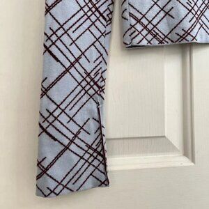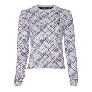 An elevated take on the classic pullover, this sweater by EQUIPMENT is made of a silk / cotton blend. It features a crewneck, extra long sleeves and an abstract light blue / maroon print. Sleeves can fold up for a contrast cuff.