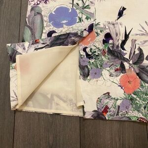 ERDEM Floral Bird White Purple Print Spaghetti Strap Body Con Midi Dress Size 4
