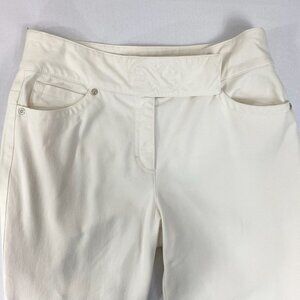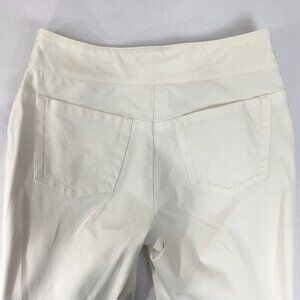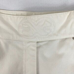 ESCADA IVORY WHITE HIGH RISE STRAIGHT LEG LOGO FRONT STITCH PANEL CLOSURE PANTS