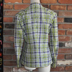 ESCADA WOVEN Tweed Silk Cotton Purple Lime Green Gold Zip-up Jacket Coat 38