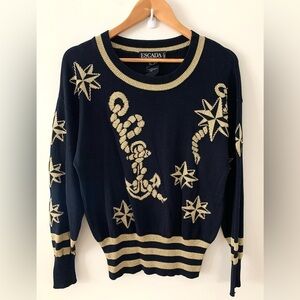 ESCADA by Margaretha Ley Vintage Nautical Black and Gold Sweater