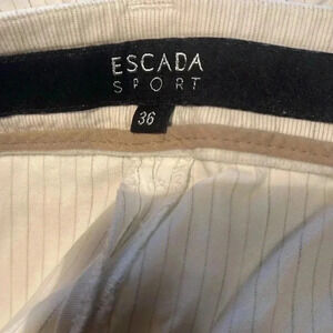 ESCADA cream pinstripe day 2 nite stylish trendy straight leg cropped pants 36