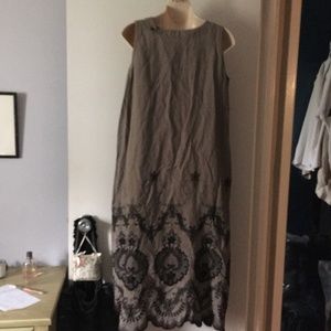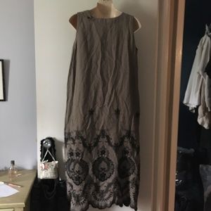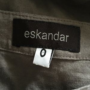 ESKANDAR Visone Tan-Taupe Linen Embroidered Scallop Hem Dress 0