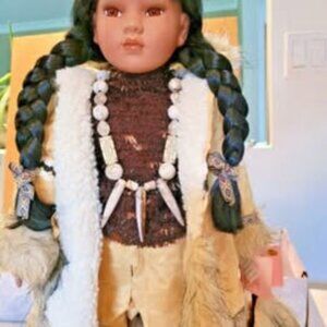 ESKIMO INUIT DOLL 24" Traditions brand Porcelain - Rare ANANA w/ Certificate