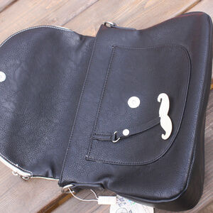 Missing strap but works cute as a clutch because it is compact and only about 3 inches wide.