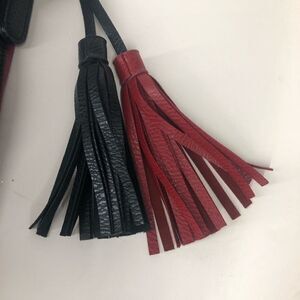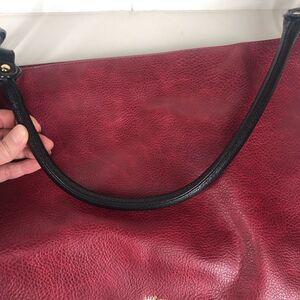 Red and black texured faux leather purse with large interior cavity to put in all the things you need.