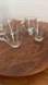 Set of 4 espresso cups. Art deco style with a taper from smaller bottom to wider top and a round handle. Clear heavy glass. No makers mark.