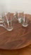 Set of 4 espresso cups. Art deco style with a taper from smaller bottom to wider top and a round handle. Clear heavy glass. No makers mark.