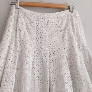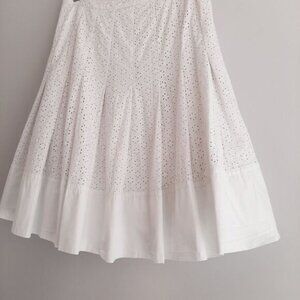 ESPRIT 100% Cotton Floral Eyelet Pleated Knee Length Skirt White Sz 4