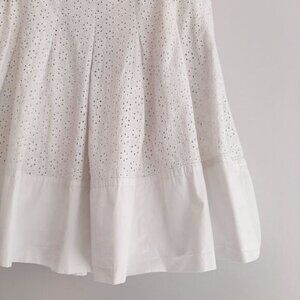ESPRIT 100% Cotton Floral Eyelet Pleated Knee Length Skirt White Sz 4