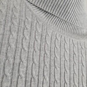 • Short sleeve comfy fitted t-neck fine knit sweater top in grey cable knit pattern.