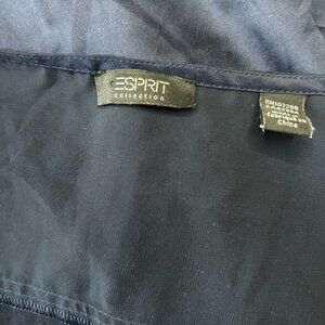ESPRIT Navy Blue Satin Sleeveless Top Scoop Neck Rushing & Shoulder Detail Large