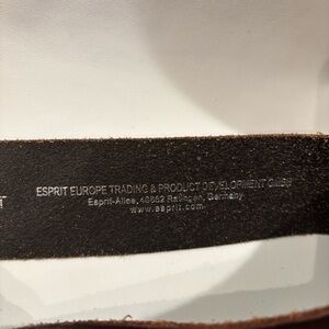 ESPRIT Sz 32” or 80 cm Brown Leather Belt with Metal Floral Style Ornate Buckle