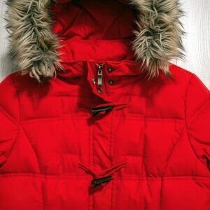 ESPRIT Women's Red Puffer Jacket Faux Fur Hood Toggle Winter Down Coat Size (M)