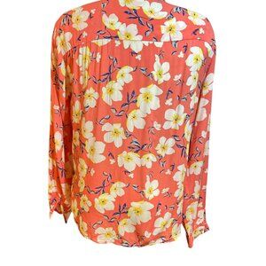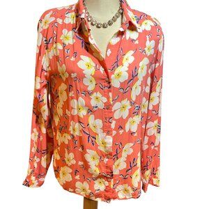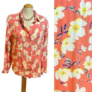 ESQUALO Button Down Blouse Top Size 10 Beautiful Floral on Peach Viscose Fabric