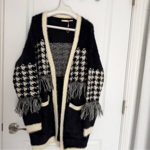 ESQUALO Fuzzy Houndstooth Print Cardigan size M